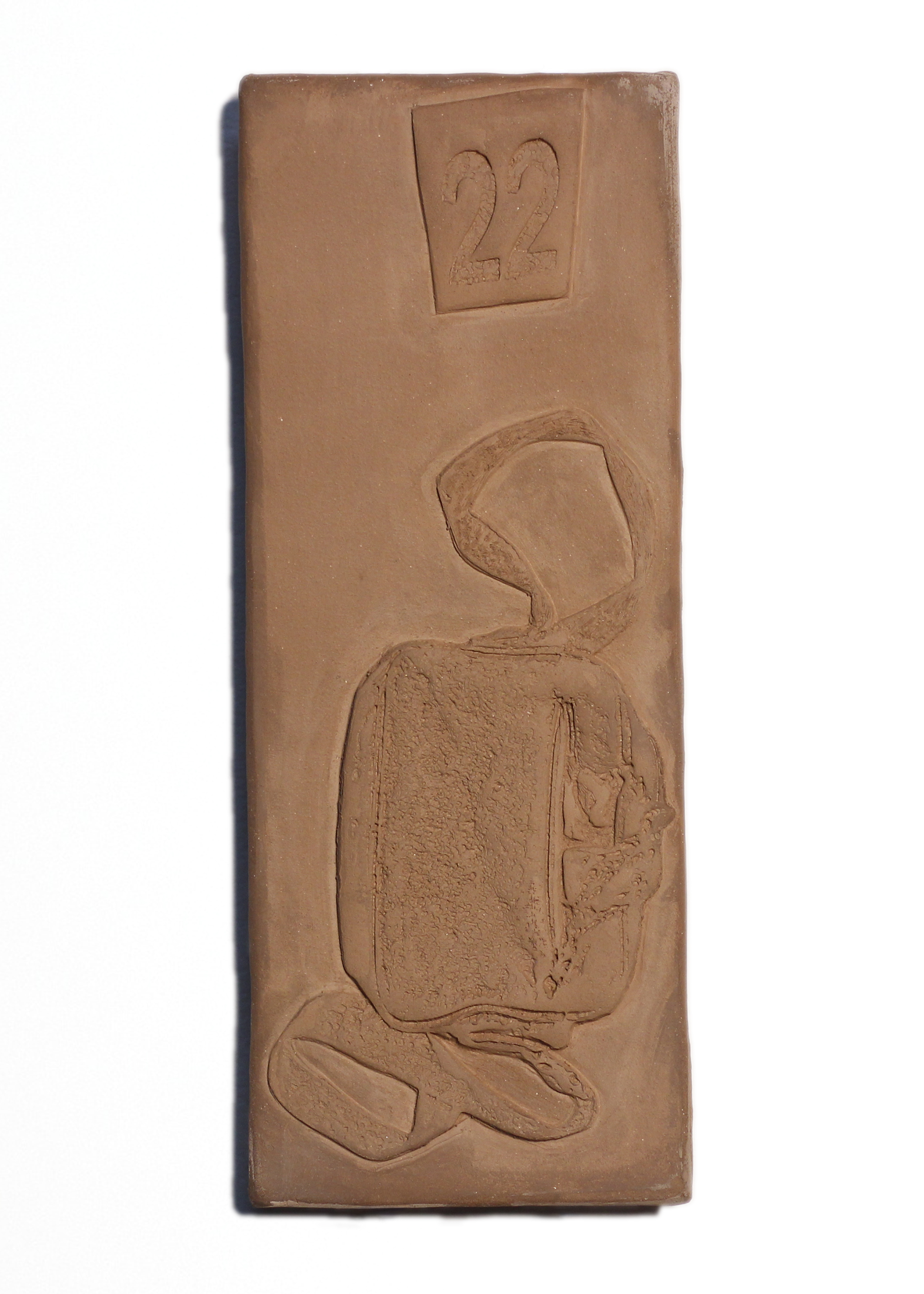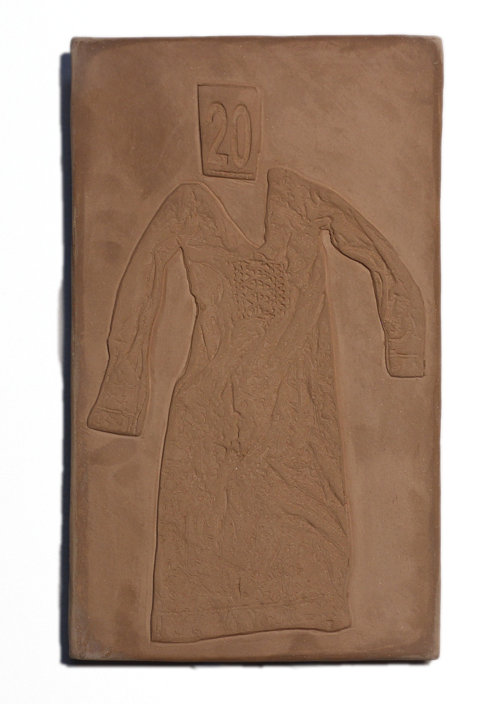 For this work, I created one ceramic piece for each “group” of objects in the catalog. The forensic teams organized the evidence alphabetically—A to Z, then AA, AB, AC, and so on—because there were too many to fit into a single series. The clay is shaped, marked, and then fired in a kiln. For me, that process connects directly to the site’s ovens: the same fire that was meant to erase becomes a way to make something endure.